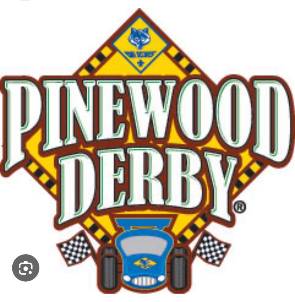 - Pinewood Derby Trial Night is Wednesday, April 10th 6:30-8:00 at Ardnts. Pit crew should arrive at 5. Scouts should bring their car to be weighed, tested, etc. Support for wheels and final tips will be there if help is needed to finish up.